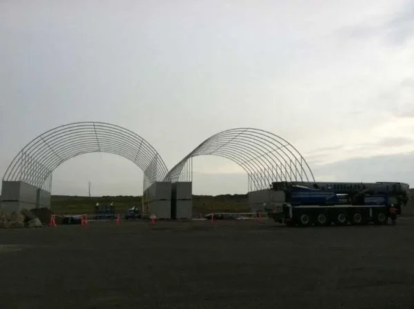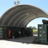 Construction of a Container Shelter is remarkably easy for Port Shipping Containers. Depending on the size of the shelter, shipping containers are placed parallel to each other on either side of the space that needs to be sheltered. The domed shelter component is then mounted on top of the parallel shipping containers to create a high-domed cover over the space in between. A secure and sturdy, yet completely portable shelter is now in place. End walls are also available if a completely enclosed shelter is required and both permanent and portable shipping container shelters are available.